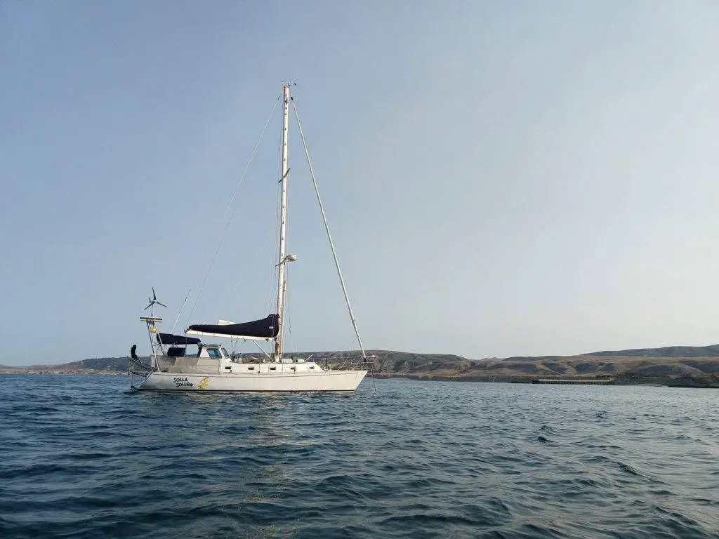PurchaseHarry bought her in the fall of 2009 and kept her up in Vancouver right in front of the Empress Hotel for a while. In the summer of 2011, he suckered some of his friends and then-girlfriend into helping bring her down the coast to Northern California. (I say “suckered” because apparently no one knew how to sail very well. They didn’t know how to reef or even what reefing is, and that is not a stretch of coast for amateurs!) All survived and Solla made it to her new home in Bodega Bay Harbor.