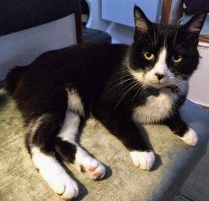 Jen found Tuxie McLovin (her adopted name) through a no-kill foster program in Marin around March 2013. She had been hit by a car, rescued by a good Samaritan, and thankfully had no injuries. She was thought to be about 1, and given the delightful little stump of a tail, a Manx. I had never met a cat so friendly with strangers and fell in love instantly.